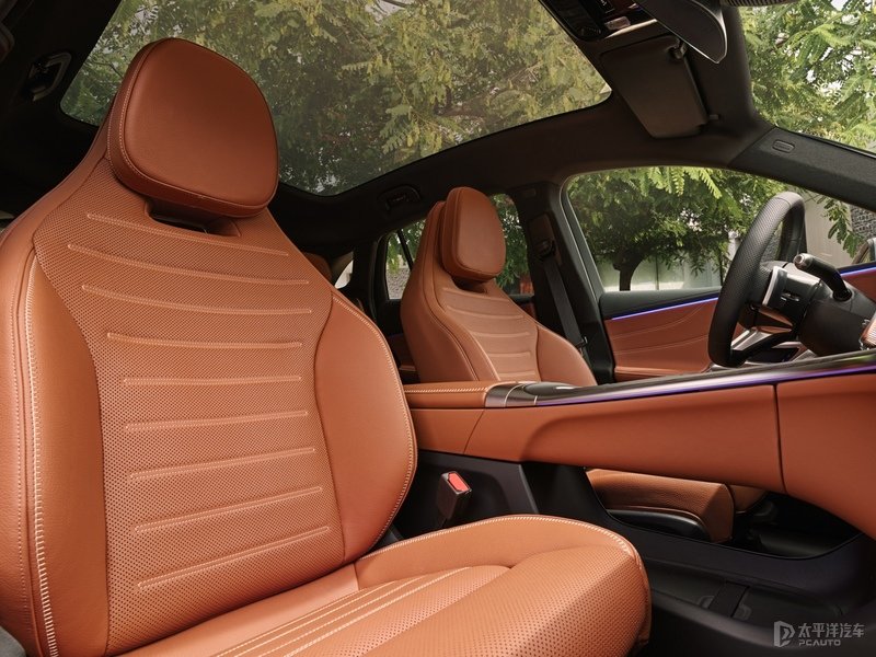 内饰氛围质感依旧表现顶级。除了门板等常规区域外,还在屏幕下方以及空调出风口上有所布局,而且空调出风口氛围灯会在调整空调时发生短暂变色,确认指令生效。同时车内拥有智能光感全景式天幕为车内乘员带来几乎没有遮挡的车顶视野,其配备9个可独立调节的分区,方便前后排乘客自由选择。值得一提的是,全景式天幕的162颗星徽采用奔驰独有的专利技术,可随氛围灯沉浸式点亮。